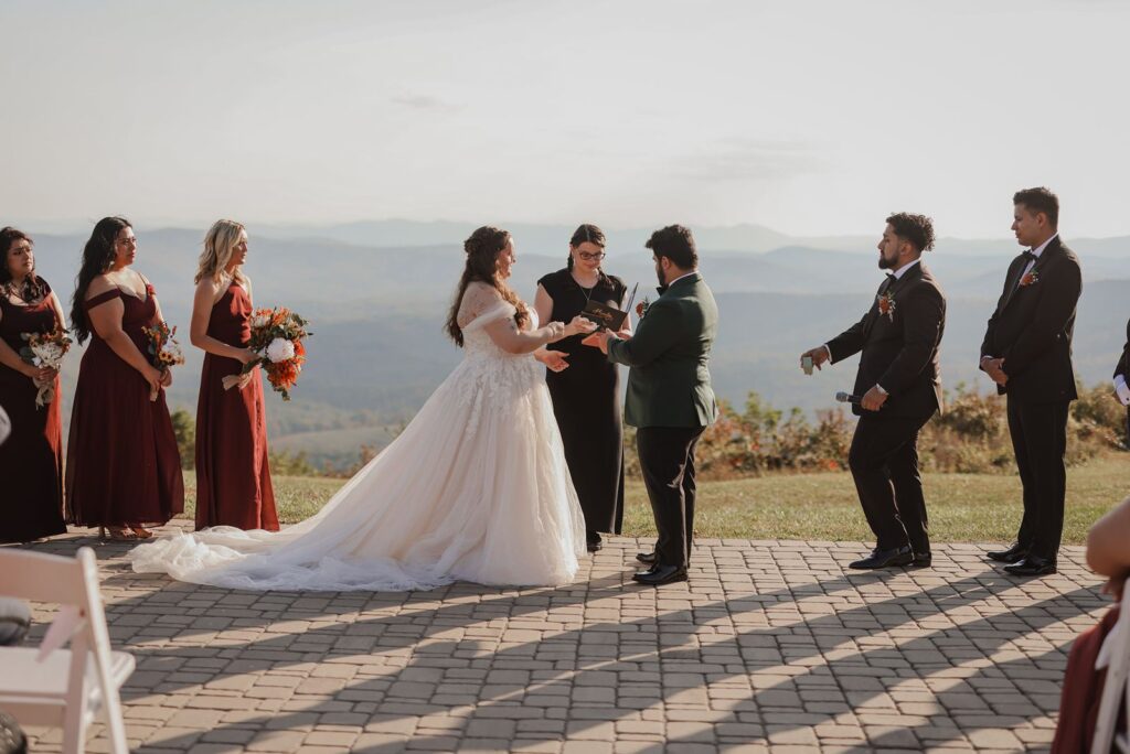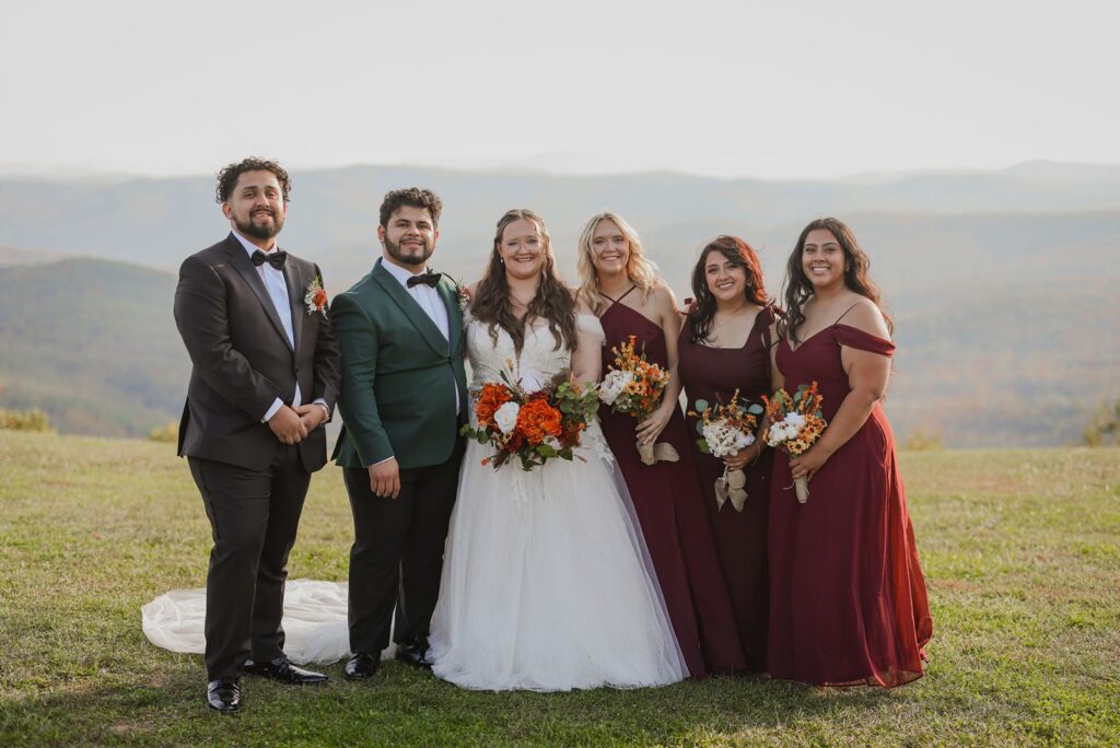One of the best parts about Sky Retreat is how naturally the layout flows for a wedding day. Couples can host their ceremony on the outdoor green with the mountains behind them. Then transition into cocktail hour on the covered veranda, and end the night in the ballroom for dinner and dancing.