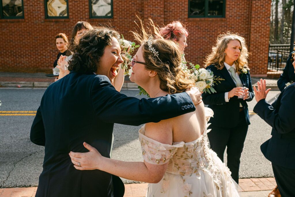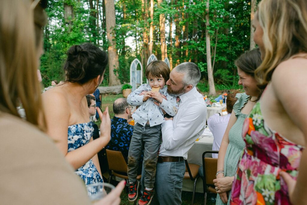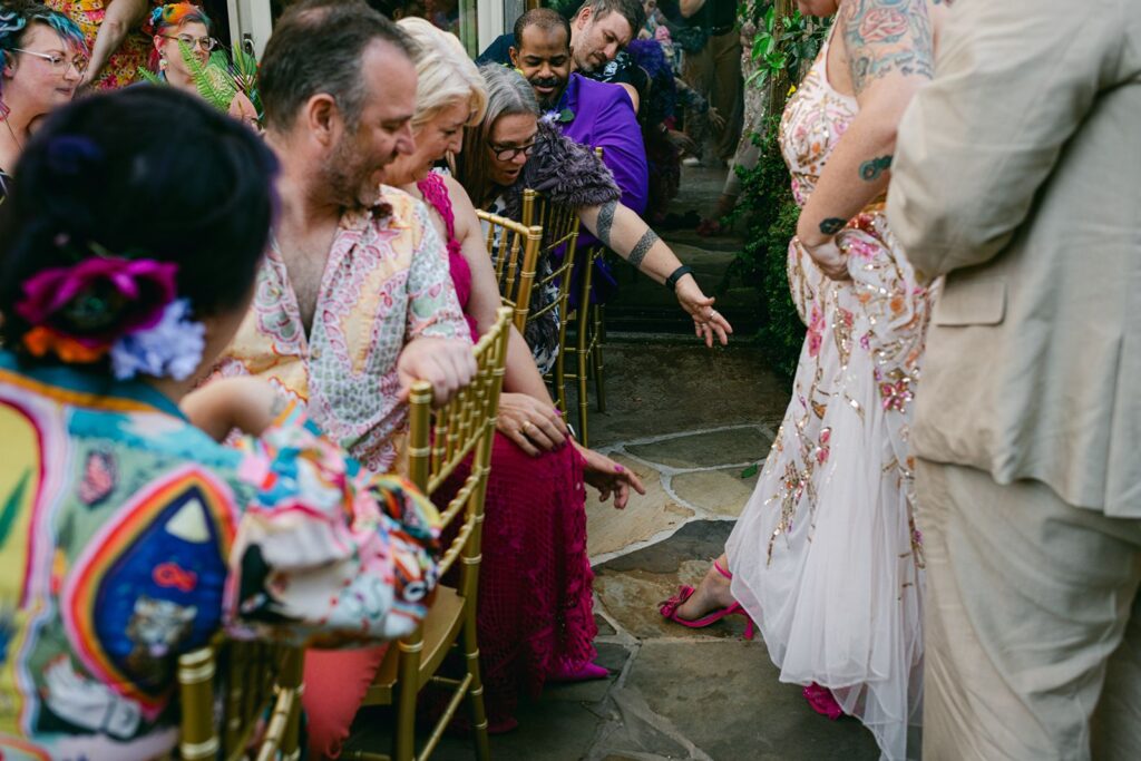 From a timeline perspective, documentary photography usually results in fewer interruptions and more continuity. You don’t need to set aside large swaths of time that are labeled as photo sessions. You’re not being taken away from your guests for extended periods. And you’re not missing out on cocktail hour. If spending time with your people is important to you, this approach supports that beautifully. When couples communicate this clearly during planning, the timeline can be built to reflect presence over production, with fewer pauses and less pressure to move from one assigned photo moment to the next.